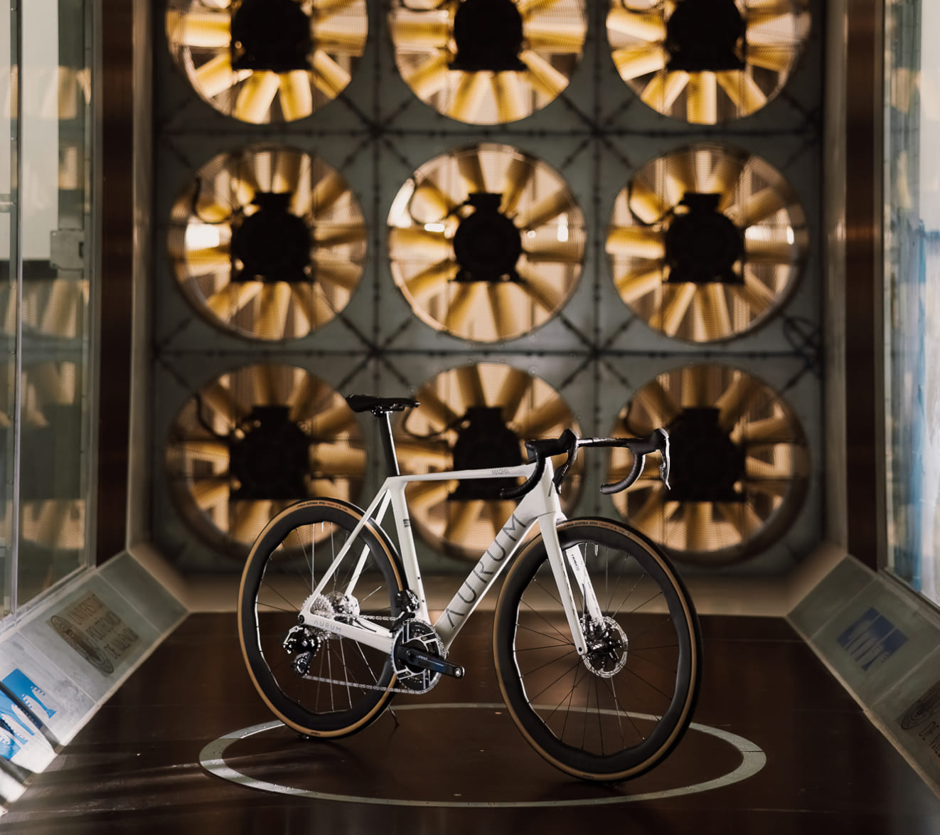 MAGMAのフレーム、フォーク、シートポスト、一体型ハンドルバーは、最速を目指し、CFD(数値流体シミュレーション)、風洞実験、プロチームによる実走テストを用いて徹底的に設計・開発されました。最終設計では、サイズ、ホイール、コンポーネントはそのままに、第一世代と比べて約7Wの抵抗を、一体型ハンドルバーは、さらに約10Wの抵抗を削減します。