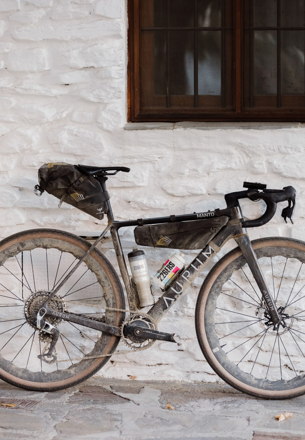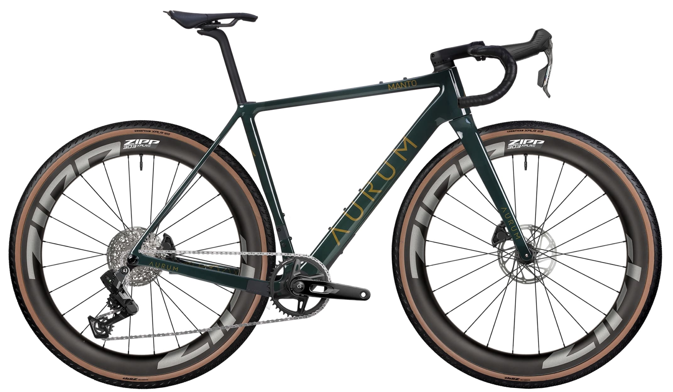 | Frame | AURUM MANTO ECT10 gravel layout, T47 threaded BB, internal cable routing, flat-mount disc |